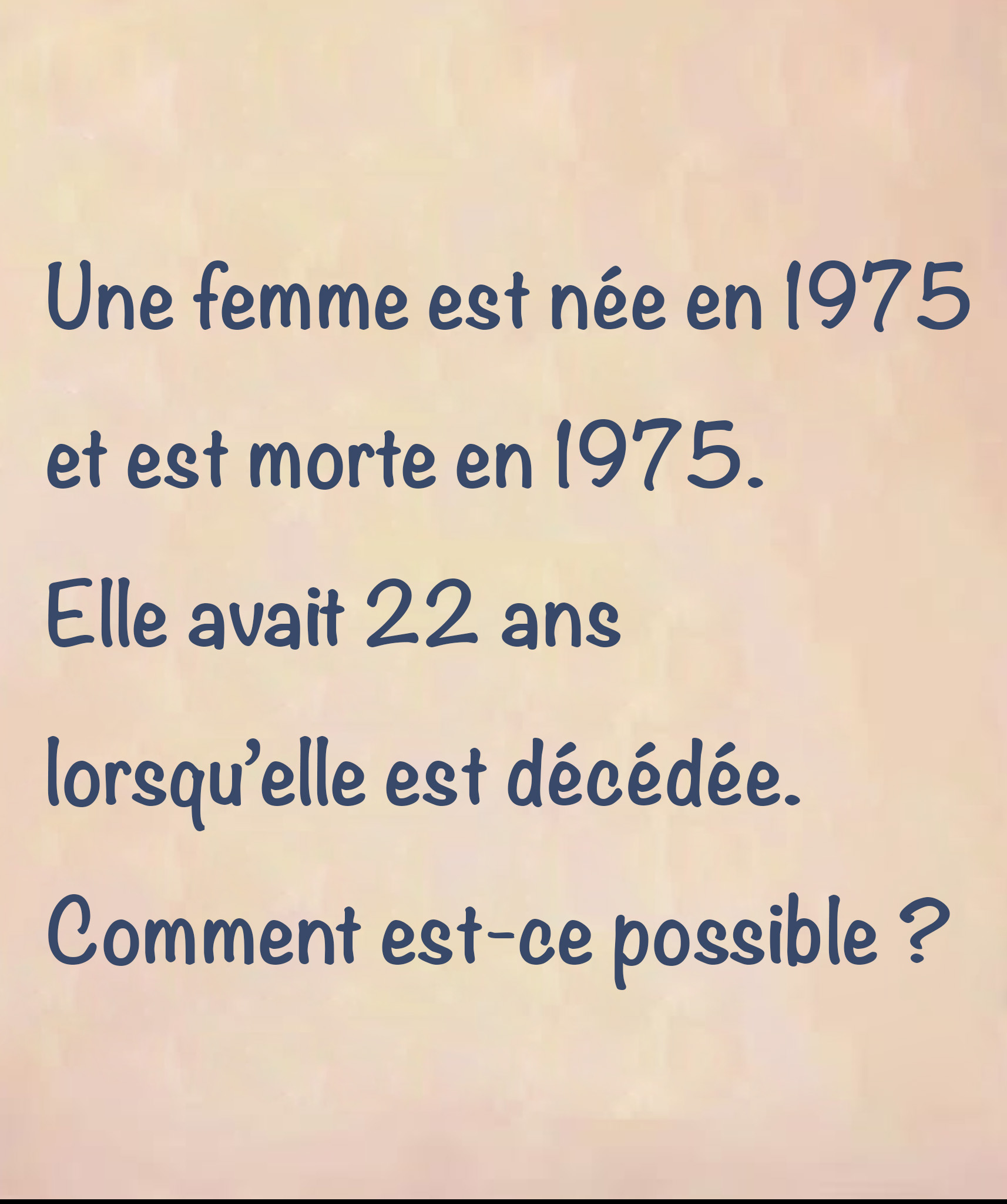 Elle est née en 1975 et morte en 1975… à 22 ans ? La devinette qui bouscule notre logique