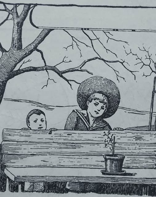 La véritable mère est dissimulée dans les branchages de l’arbre. Les formes du tronc et des feuilles dessinent subtilement un visage féminin. Une fois ce visage repéré, la perception bascule immédiatement. Il devient alors impossible de ne plus le voir.